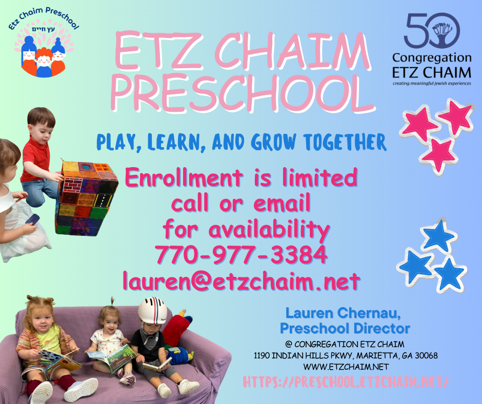 Etz Chaim Preschool believes that all children deserve the opportunity to be children. We provide the environment and experiences to learn through play, based on the interests of the children. As learning should be meaningful and relevant, we guide children to grow through their interactions with their peers and teachers. Our goal is to help children grow to have a positive impact on others and the world.